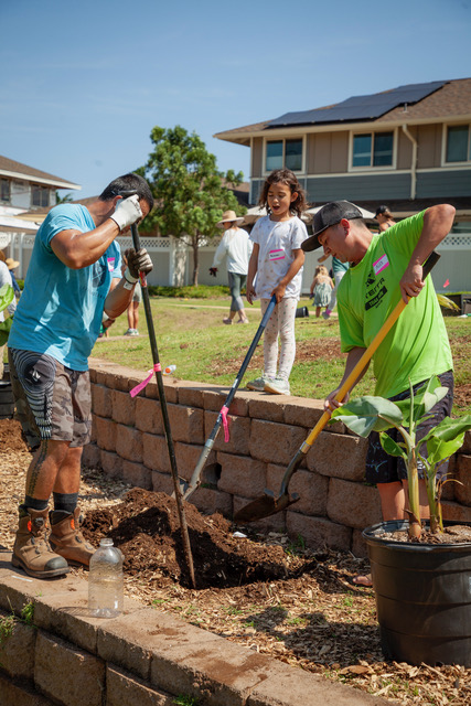 #1: On the initial planting day in April 2025, more than 100 volunteers convened at Kahoma Village to plant 100 trees.