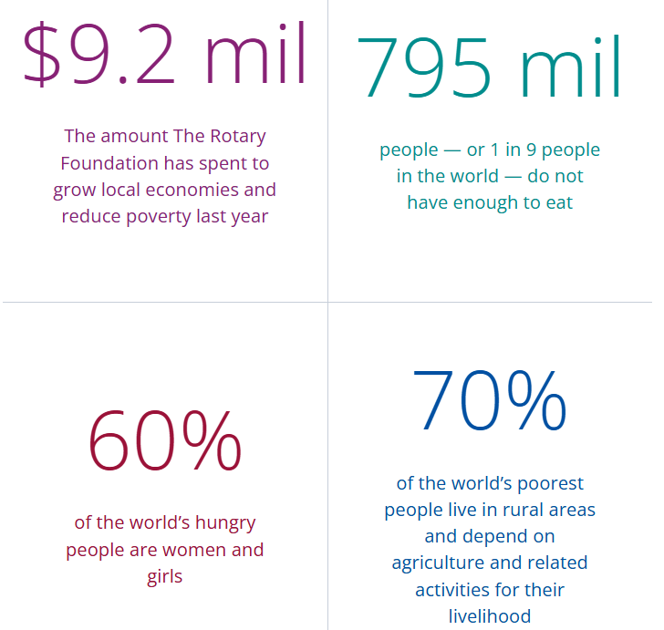 Almost 211 million people were unemployed globally in 2024 compared to 192 million in 2019. Rotary’s priority programming: Our members are likely to succeed in service projects that address: Access to sustainable employment, Entrepreneurship and sustainable business opportunities and Food and resilient agriculture.