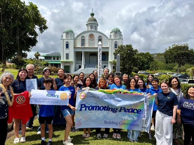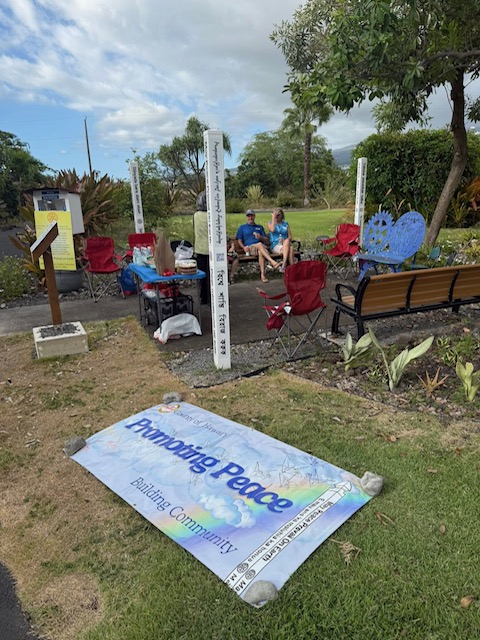 -The Rotary Clubs of Hawaii Island celebrated a Peace Week with a peace pole rededication, participated in the Honoka’a Peace Festival, Peace Celebration at the Puna Hongwanji and dedicated a peace pole at the Kona VFW. Mayor Alameda proclaimed September 16-23 Peace Week and invited the community to support the United Nations as we strive for a world devoid of racism and racial discrimination, a world where compassion and empathy triumph over suspicion and hatred.