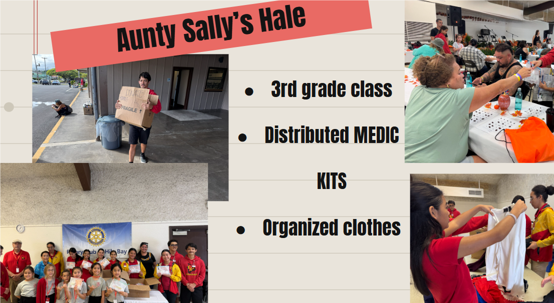 Report from the Interact Students at St. Joseph School in Hilo: Last year, we created the M.E.D.I.C project, an ongoing project dedicated to creating medical kits that included essentials for homeless people. These medical bags included bandages, disinfecting wipes, neosporin, expandable towels, and more. We also made female bags that had female hygiene products. With these bags, we included inspirational quotes and a small toy in order to lift the receiver’s spirits as sometimes little things can impact a person’s emotions. We also included multi-colored rosaries for people to choose from so that they can also further enhance their belief in God and practice their faith