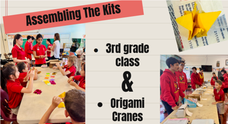 This year ended up making around 120 M.E.D.I.C bags!!! And this time we included the help of our 3rd Grade class who were extremely eager to help us out and to assist the homeless. When the 3rd grade had caught wind of our plan to distribute M.E.D.I.C. kits again, they were super eager to help us out this time. Even though they are small, they are making a big difference in our community and helped us out a lot when it came to creating the MEDIC kits and creating the origami cranes! This year we decided to opt for Origami Cranes instead of a small motivational message because the Origami Crane has a lot of history behind it and suggested by Mr. Okinaka, representing hope, peace, healing, love, and longevity. They are often given to newlyweds for fidelity, used in memorials for world peace, and in this case, given to the sick for recovery. Our third graders also did a really good job at making paper cranes for their first time, they really impressed most of us.