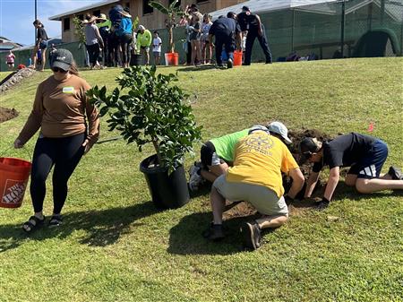 Rotarians have been assisting TreeCovery in multiple ways. We have helped repot trees for the grow hubs. Rotarians from four Maui Clubs participated in planting trees for the first Lahaina homeowner ready to receive them. During Malama Maui Weekend Rotarians from all over the District helped plant 100 trees and shrubs at Kahoma Village in Lahaina. And recently Rotarians from two Maui Clubs assisted in planting over 100 trees and shrubs at the Lahaina Jodo Mission, which burned in the fire.